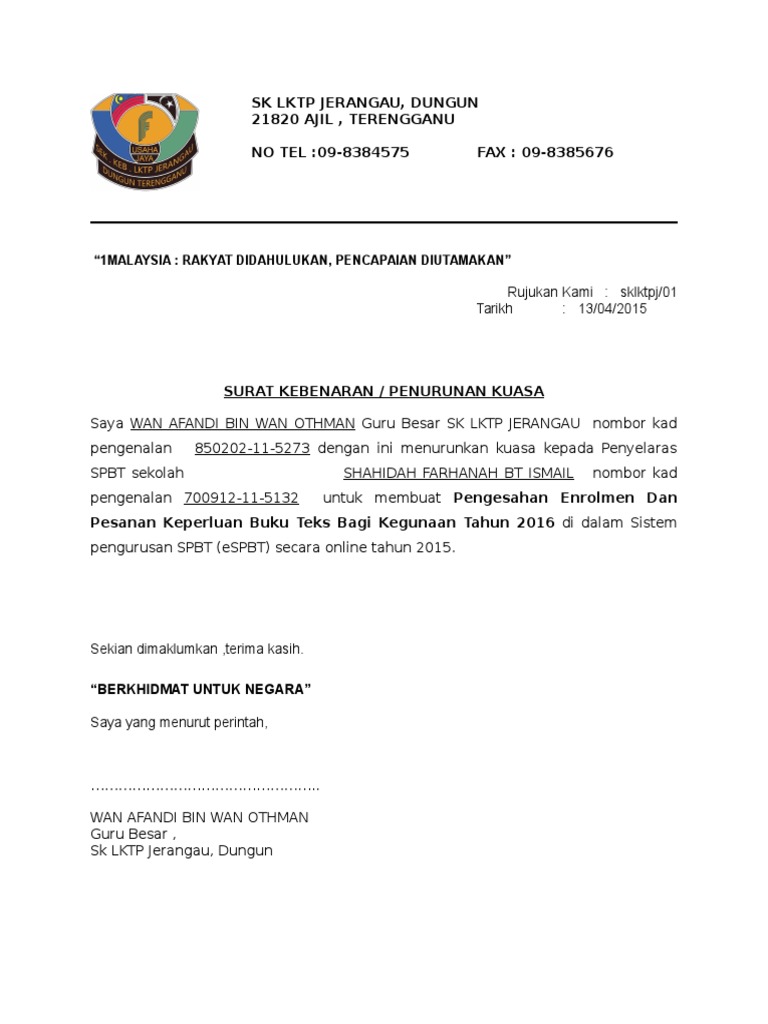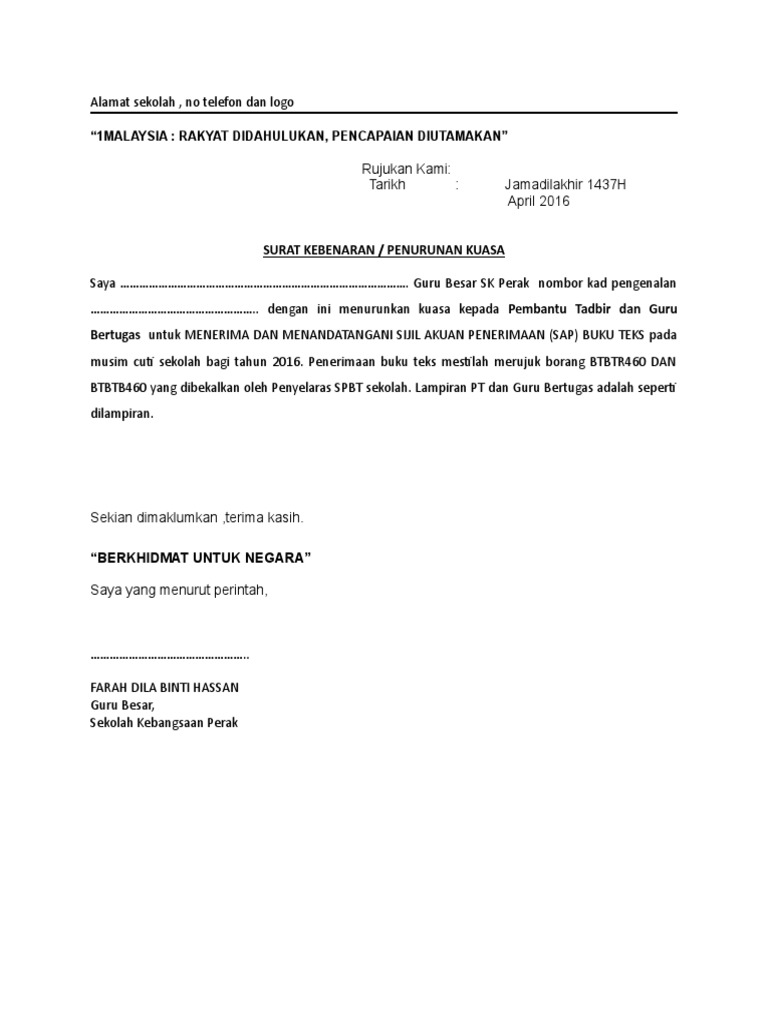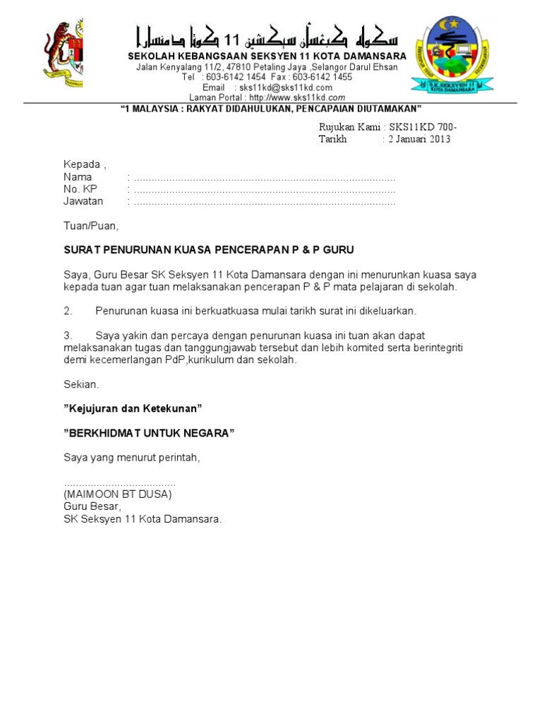 Contoh Surat Penurunan Kuasa Pengetua Pdf