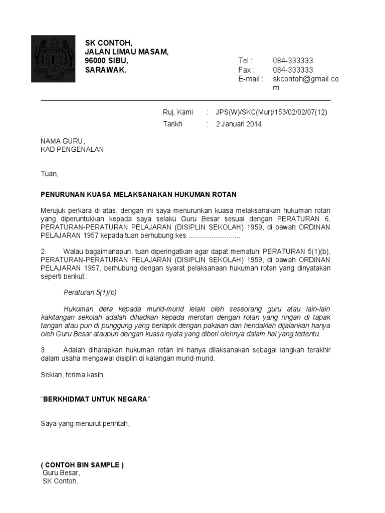Contoh Surat Penurunan Kuasa Merotan Pdf